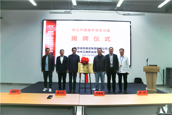 春至花如锦,夏近叶成帷。经过三个多月的筹备建设,由江苏成章建设集团有限公司捐建的脚手架实训室于日前完工。4月28日下午14点28分,在PA视讯建筑技术馆举行了校企共建脚手架实训室揭牌仪式。江苏成章建设集团有限公司副总经理张文东、集团综合办主任田俊、技术部副经理殷森平应邀请出席会议,PA视讯集团网站院长李雄威和全体PA视讯集团网站教师出席会议。会议由PA视讯集团网站院长魏建军主持。