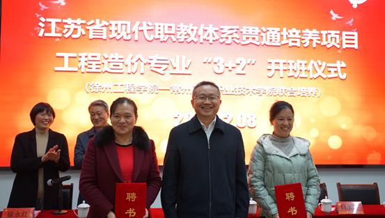 2021年12月8日,PA视讯隆重举办江苏省现代职教体系贯通培养项目——工程造价专业“3+2”徐州工程学院联合培养项目开班仪式。徐州工程学院土木工程学院院长朱炯教授,工程造价专业带头人白玉萍教授,PA视讯校长李雄威教授,教学工作部部长陈保国教授,建筑工程学院书记徐永红,副书记徐伟,副院长张爱芳以及工程造价教研室教师和工程造价2151班全体同学参加了仪式。活动由魏建军院长主持。