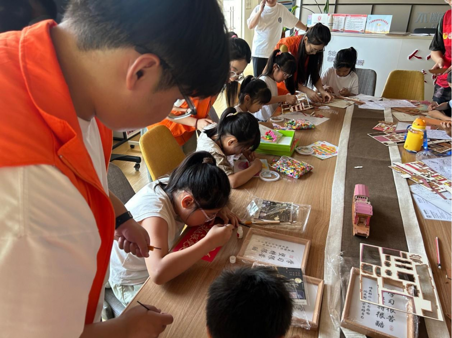 孩子们在志愿者的指导下分组合作,有的认真研究图纸,有的发挥想象力自由拼搭,共同完成简易榫卯模型或简易桥梁的搭建。在互帮互助、共同探索的过程中,团队协作精神悄然萌芽,抽象的“结构”、“承重”等概念也变得触手可及。