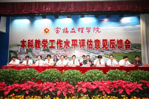 6月8日上午10时30分,在学院新校区音乐厅,教育部评估专家组召开了我院本科教学工作水平评估意见反馈会。教育部高等教育教学评估中心刘凤泰主任专程莅临反馈会。教育部评估专家组组长王万良教授,副组长王磊教授,专家罗固源教授、王蒲教授、刘必清教授、段炳昌教授、卢晓中教授、杨雪特教授,专家组秘书朱显成博士、龚方红博士,陕西省教育厅郝瑜副厅长,中共宝鸡市委常委、宣传部长龚晓燕,省教育厅高教处曾平处长以及我院党政领导出席了会议。会议由王磊教授主持。