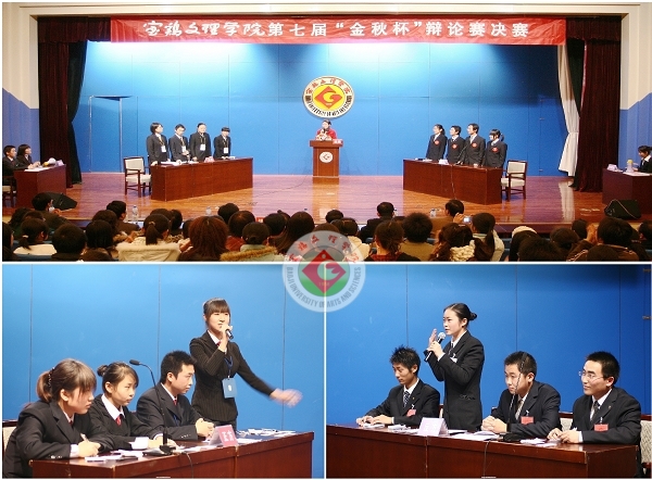 11月20日晚,我院第七届“金秋杯”辩论赛决赛在新区音乐厅举行。本次比赛由院团委主办,中文系团总支、教育系团总支承办。学院部分职能部门负责人,部分系的党总支书记、系主任及学生400余人观看了比赛。