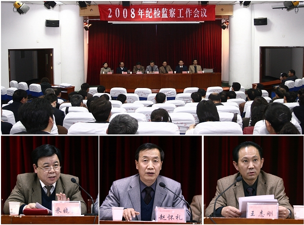 我院2008年纪检监察工作会议于4月3日下午在老校区综合楼1号学术报告厅举行。学院党政领导出席会议,全院副科级以上干部参加会议。会议由米晓东主持。