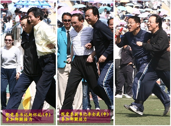 院党委书记赵怀礼,院长王志刚,院党委副书记米晓东、李全武,副院长赵怀玉、傅志军、王普藩、赵荣侠及各部门、各单位的主要负责人出席了运动会开幕式和闭幕式。(教务处供稿)