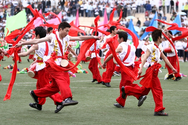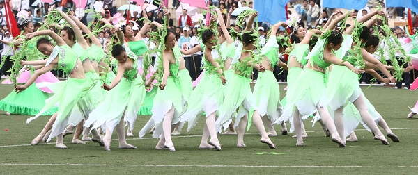在开幕式和闭幕式上,教职工太极拳表演、大学生健美操表演、大型团体操表演和大型舞蹈《圣火》、《绿色宝鸡》以及音乐系学生的歌唱表演为本次运动会增添了靓丽的色彩。