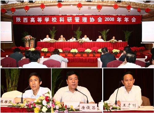5月12日,陕西高等学校科研管理协会2008年年会在宝鸡隆重召开。会议由陕西高等学校科研管理协会主办,西安建筑科技大学承办,bat365在线中国官网登录入口协办。中共宝鸡市委书记唐俊昌,陕西高等学校科研管理协会理事长、西安理工大学校长刘丁,陕西省教育厅副厅长张雄强,陕西省教育厅科研与产业处处长窦海潮以及我院院长王志刚、副院长赵荣侠出席开幕式。会议由协会秘书长叶青峰主持。