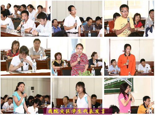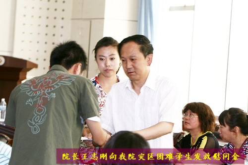 24名来自灾区、家庭遭受困难的学生在发言中表达了对家乡亲人的牵挂,表达了在困难面前绝不低头、战胜困难的决心。他们纷纷表示要努力学习,扎实工作,乐观生活,用实际行动回报家乡、回报学校、回报社会。