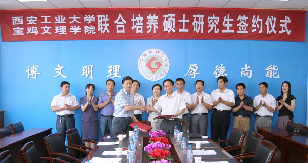 7月4日上午,学院在新校区第一会议室举行了与西安工业大学联合培养研究生签约仪式。西安工业大学校长刘江南,校长助理、研究生部主任陈桦,研究生部总支书记、副主任雷亚萍,计算机学院院长百万民、副院长容小峰等一行5人参加了会议。会议由副院长赵荣侠主持。