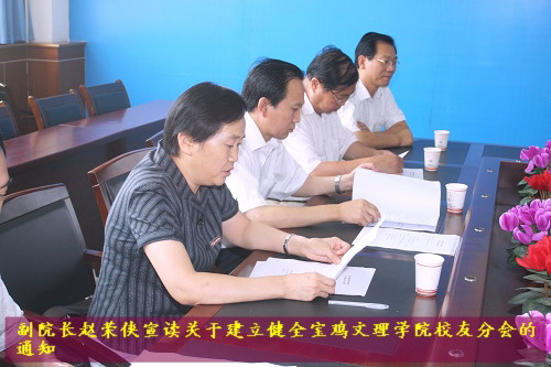 会上,上届宝鸡地区校友分会会长、本届副会长薛兆翔同志小结了上一届校友会工作,他对母校和宝鸡地区校友分会友好合作的历史作了简要的回顾,他说,第一届校友会自1995年组建以来,在聚集人气、宣传学院、激励校友、联系学院与校友中作出了重要贡献。他代表宝鸡地区校友表示,在今后的工作中,一定继续为学院发展作出更多贡献。与会校友一致表示,绝不辜负母校的期望,尽力做好宝鸡地区校友分会的工作,为母校五十周年校庆进行大力宣传,并联络宝鸡地区校友积极与母校沟通及开展相关活动。会议还通过了bat365在线中国官网登录入口校友总会宝鸡地区校友分会章程。院长办公室主任贾卫忠、人事处长陈来应、学工部副部长唐晓育参加了会议。 (校庆办供稿)