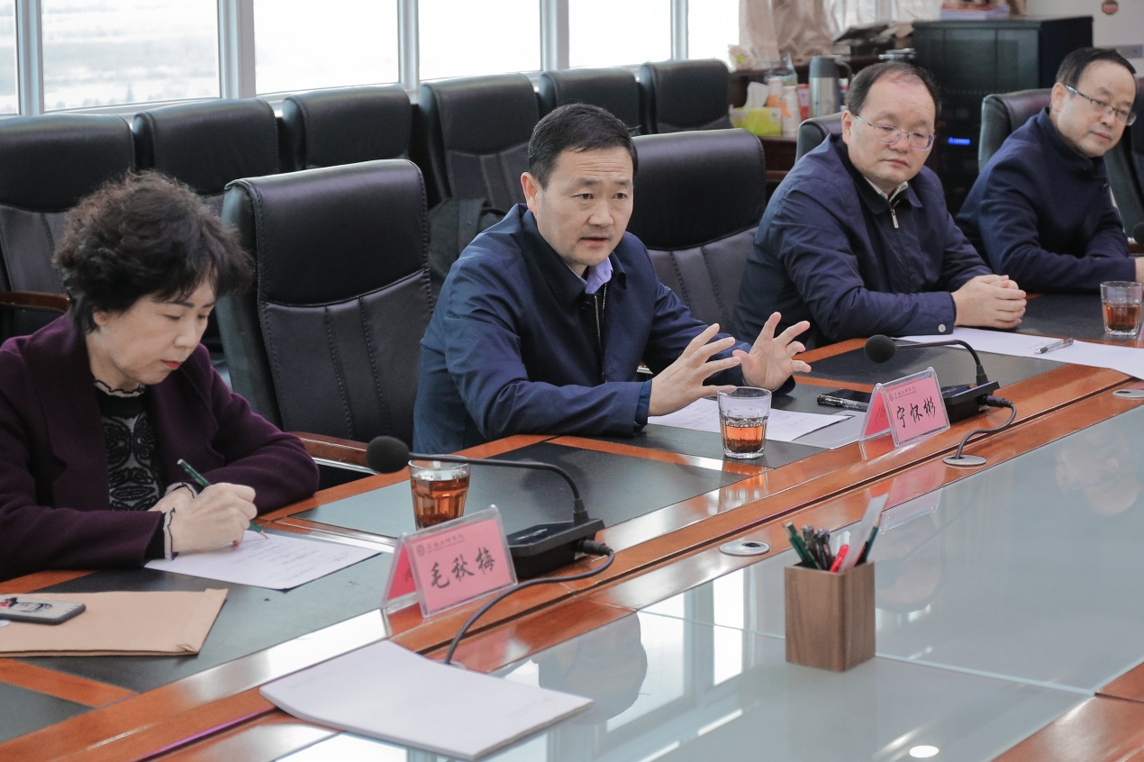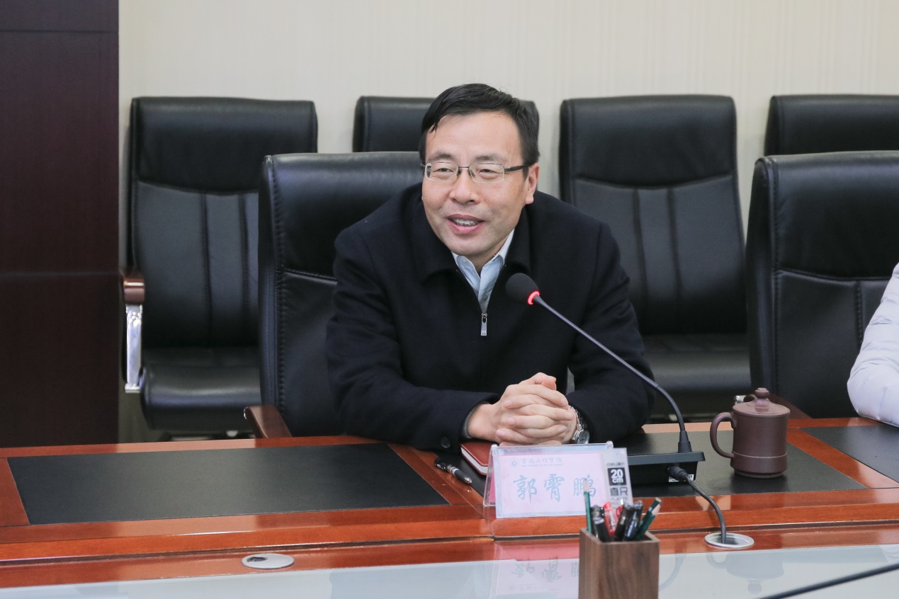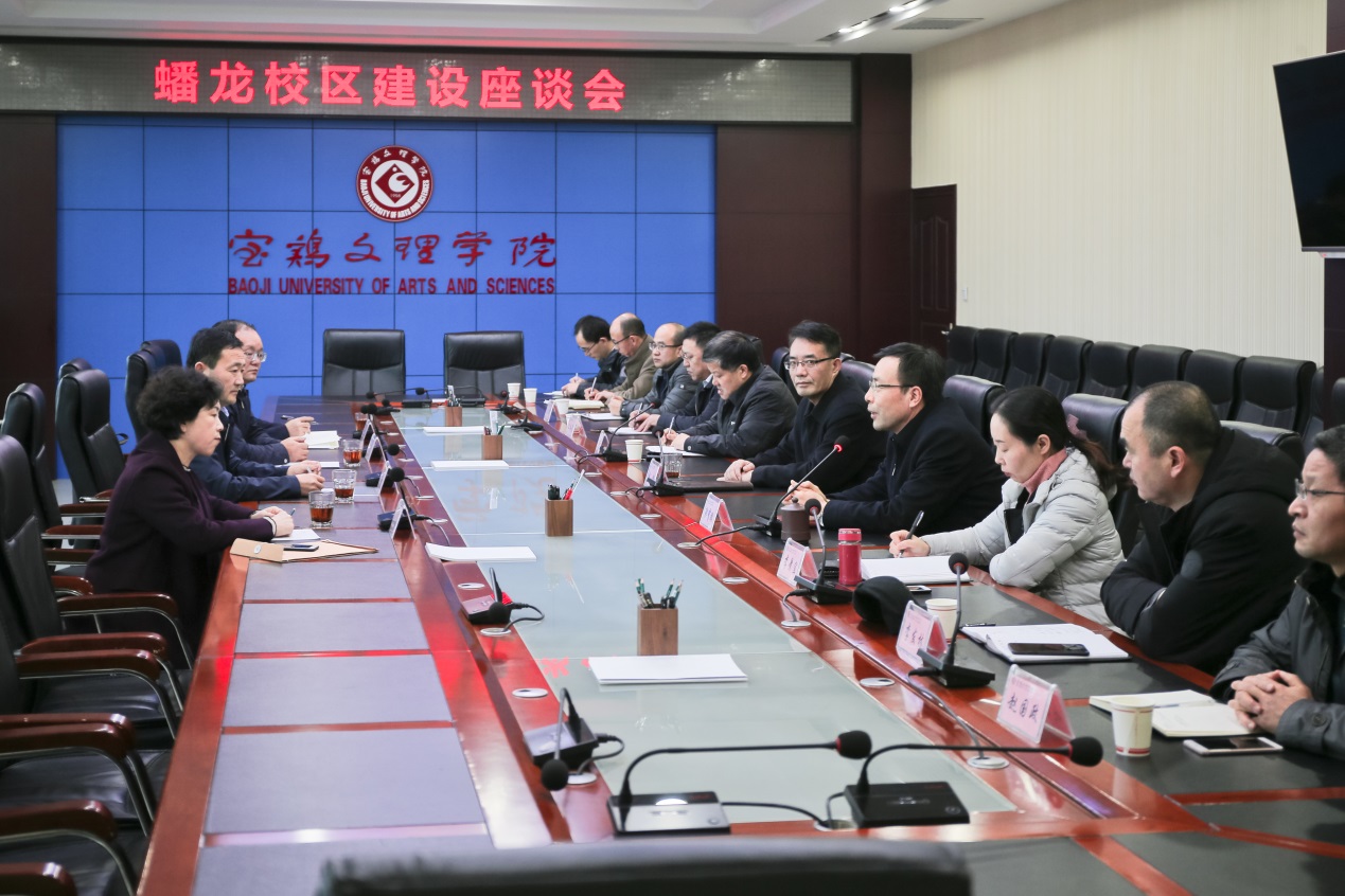 12月18日上午,宝鸡市金台区委书记、蟠龙新区管委会党工委书记宁怀彬,金台区区长、蟠龙新区管委会党工委副书记薛建恩,金台区政协主席毛秋梅,蟠龙新区管委会副主任容林文一行四人来bat365调研,助力学校建设发展。校党委书记赵健、校长郭霄鹏、副校长李景宜出席调研座谈会。会议由副校长王富平主持。