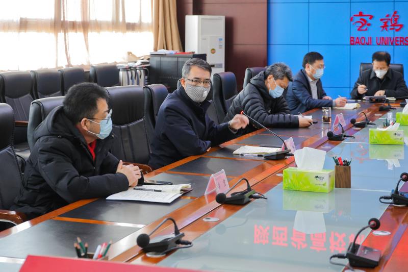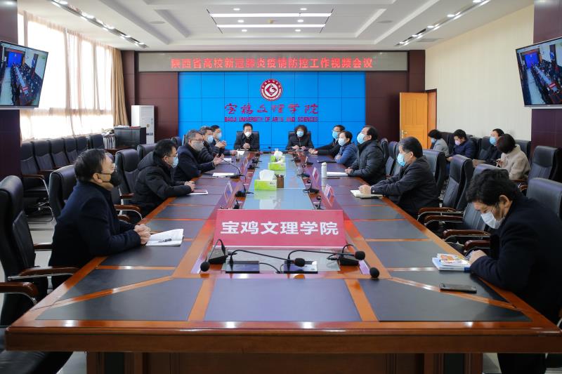 2月21日上午,全省高校新冠肺炎疫情防控工作视频会议召开。陕西教育系统新冠肺炎疫情防控工作领导小组组长、省委教育工委书记董小龙,组长、省委教育工委副书记、省教育厅厅长王建利,常务副组长、省委教育工委委员、省教育厅副厅长赵昶葆等出席会议。bat365疫情防控工作领导小组成员及相关部门负责人在高新校区图书馆801会议室参加视频会议。