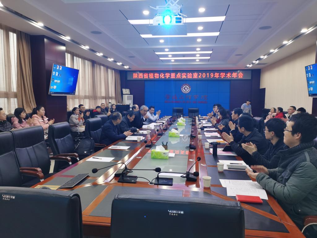 陕西省植物化学重点实验室于2020年1月14日召开了2019年学术年会。副校长李景宜教授出席会议并主持开幕式。学术委员会主任委员房喻教授、副主任委员高锦明教授,委员傅强教授、赵新锋教授和马养民教授,校内委员杨得锁教授、王晓玲教授和凡明锦教授,陕西省植物化学重点实验室16位科研骨干和19名在读研究生参加了会议。