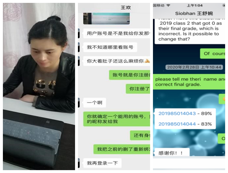 马克思主义学院没有自己的本科生,却教过全校的本科生,如何协助老师落实全校思政类课程的网络教学?这给马克思主义学院教学秘书陈海宁带来了一个挑战,从二月起,她从网络教学的准备、网络教学运行以及信息反馈等方面做了大量的工作,跨学院建立微信、QQ辅助教学群,耐心解答师生的各类问题,为网络教学提供了优质的教学保障服务。如何保障外籍教师如期开展教学,是外国语学院教学秘书尚春兰面临的突出困难,“跨时空”教学服务对本不是英语专业的她来说,不仅是一次挑战,也是一次成长。她克服语言障碍、时差问题等种种困难,和外教沟通落实上课平台、上课时间、上课形式,在多方的支持和配合下,跨国际的隔空互动网络教学按期顺利开展。本学期计算机学院具有教学任务重、外聘教师多、几乎所有课程有实验等特点,作为教学秘书的高英,为了学院网络教学顺利进行,她逐一联系外聘老师,仔细核实上课信息,理论实验分类施策,精准服务每门课程和每名师生,尽自己的最大努力为全院师生提供教学保障和服务。地理与环境学院教学秘书鲁丹孕期反应严重,但也丝毫没有放松工作,在承担各项教学管理工作的同时不断压缩个人时间精力,舍小我为大家,及时高效地为老师和学生的教与学提供保障服务。教育学院教学秘书马丽娜克服了身在境外的不利条件,利用微信、企业微信、QQ等平台与师生密切联系,耐心解答各种问题,有条不紊地帮助所有任课教师搭建平台、转变教学方法、落实教学任务,确保了全院70门课程、9293人次的顺利开课。