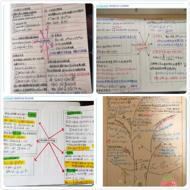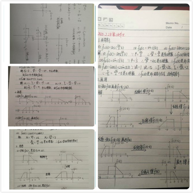 疫情下的教学,迫使所有老师成为课程在线主播,那么“如何在50分钟内,讲好一门理论很强的直播课”就成为张建伟老师面对的第二个新问题。课程特点无法改变,别人的上课模式也无法照搬。经过一段时间探索,张建伟逐渐找到适合本课程、适合学生的几个讲课原则:一是“能画图,不解析”。讲授过程中尽量淡化解析,淡化数学推导过程,取而代之的是更容易理解的画图讲解,以学生能够接受结论并会使用为最终目的。二是“少过渡,抓重点”。改变以往铺垫较长、过渡较多的讲述方式,直奔主题,多解释物理含义,多讲应用,往往可以在较短的时间内完成教学任务,达到预定教学效果。三是“多练习,多总结”。网络的便捷使得“布置—完成—批改—反馈”的作业周期变得很短,利用这一特点,张建伟基本每节课结束都会针对性布置适量的练习题目,并在下一次课针对集中问题示范讲解。虽然这增加了很大工作量,但作业的完成情况可以及时反映学生的学习情况,从而及时进行调整。此外,在一部分关联知识点学习完成后,要求学生写出课程小结,画出思维导图。开学至今,学生们已经积攒起厚厚的“信号与系统”课程笔记。
