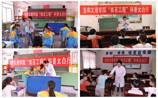 根据学校年度“双百工程”工作安排,近期,校扶贫办组织部分师生赴太白县开展了乡村旅游发展及市场营销培训、心理健康培训、“科学乐园”科普实验展、白云村公益演出活动和民居墙体美化帮扶工程等系列帮扶活动。