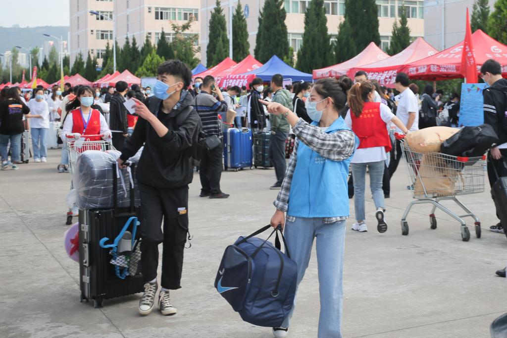 在疫情防控常态化背景下,学校统筹安排新生接待工作,在校门口实行“一换二消三测四核五进”。迎新期间,全体教职员工以饱满的工作热情全身心投入到工作中,热情接待,周到服务,耐心细致地解答新生提出的各种问题。招生就业处积极协调,租用手推车、小型客运车等帮助新生搬运行李。校团委、学生会和各二级学院分别组建学生志愿者服务团队,热情引导新生办理入学报到手续,帮助新生适应学校环境,尽快融入大学生活。