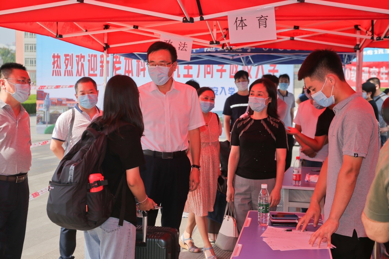 2020年秋季学期是处于常态化疫情防控下的特殊时期。8月29日,是bat365全面恢复正常教育教学秩序的第一天。校长郭霄鹏、副校长李景宜等一行来到位于高新校区的学生返校和研究生迎新现场,看望慰问学生,检查指导学生返校和研究生迎新工作。