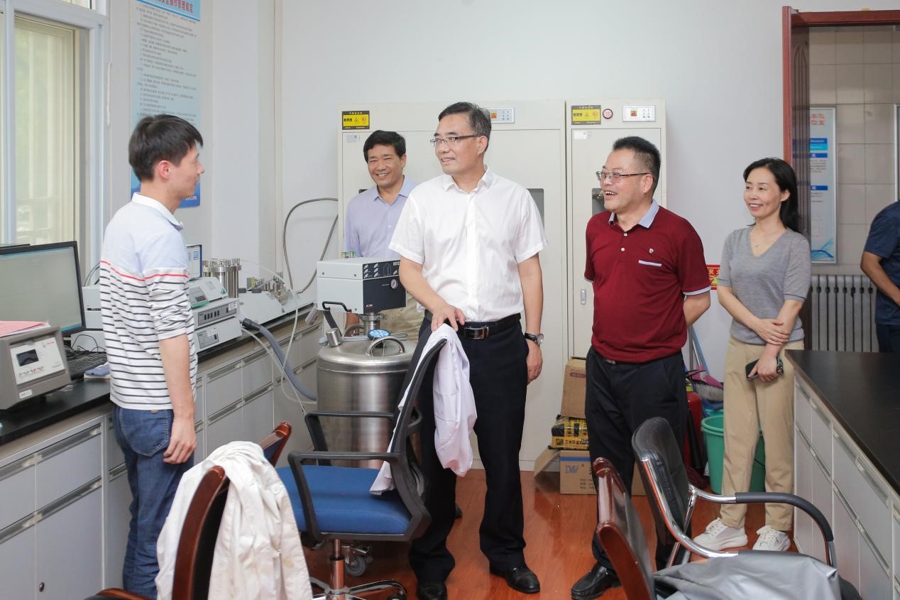 在化学化工学院和地理与环境学院,校领导听取了两个学院相关工作汇报,实地查看了两个学院专业实验室和基础实验室,慰问了坚守在科研一线的高层次人才、科研骨干和部分研究生、本科生。校领导充分肯定了暑期依然坚守在科研一线的师生们爱岗敬业、奋发进取的精神,勉励他们继承和发扬老一辈知识分子的优良传统,甘于坐“冷板凳”,不断创新,为创建高水平大学多作贡献。