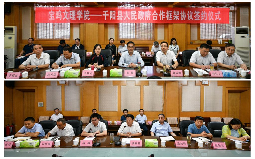 在随后召开的座谈会上,郭霄鹏、杨子元、李景宜向县上领导同志全面介绍了学校的发展历史、专业设置、学科建设、人才培养等方面的具体情况。千阳县县长张新科、陇县县长赵甲宏、扶风县县长齐军建分别介绍了三县县情,特别是历史文化、产业调整、教育事业、脱贫攻坚、旅游生态等经济社会发展各方面的情况。bat365相关处室、学院和县级部门负责人围绕校地合作内容和方式进行了充分交流。bat365与三县分别签订了校地合作协议。
