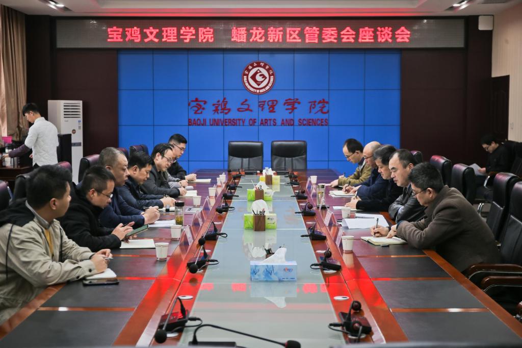 10月28日上午,蟠龙新区管委会主任唐军科一行7人来bat365就蟠龙校区建设相关事宜进行座谈。双方在高新校区图书馆801会议室召开了座谈会,会议由副校长王富平主持。
