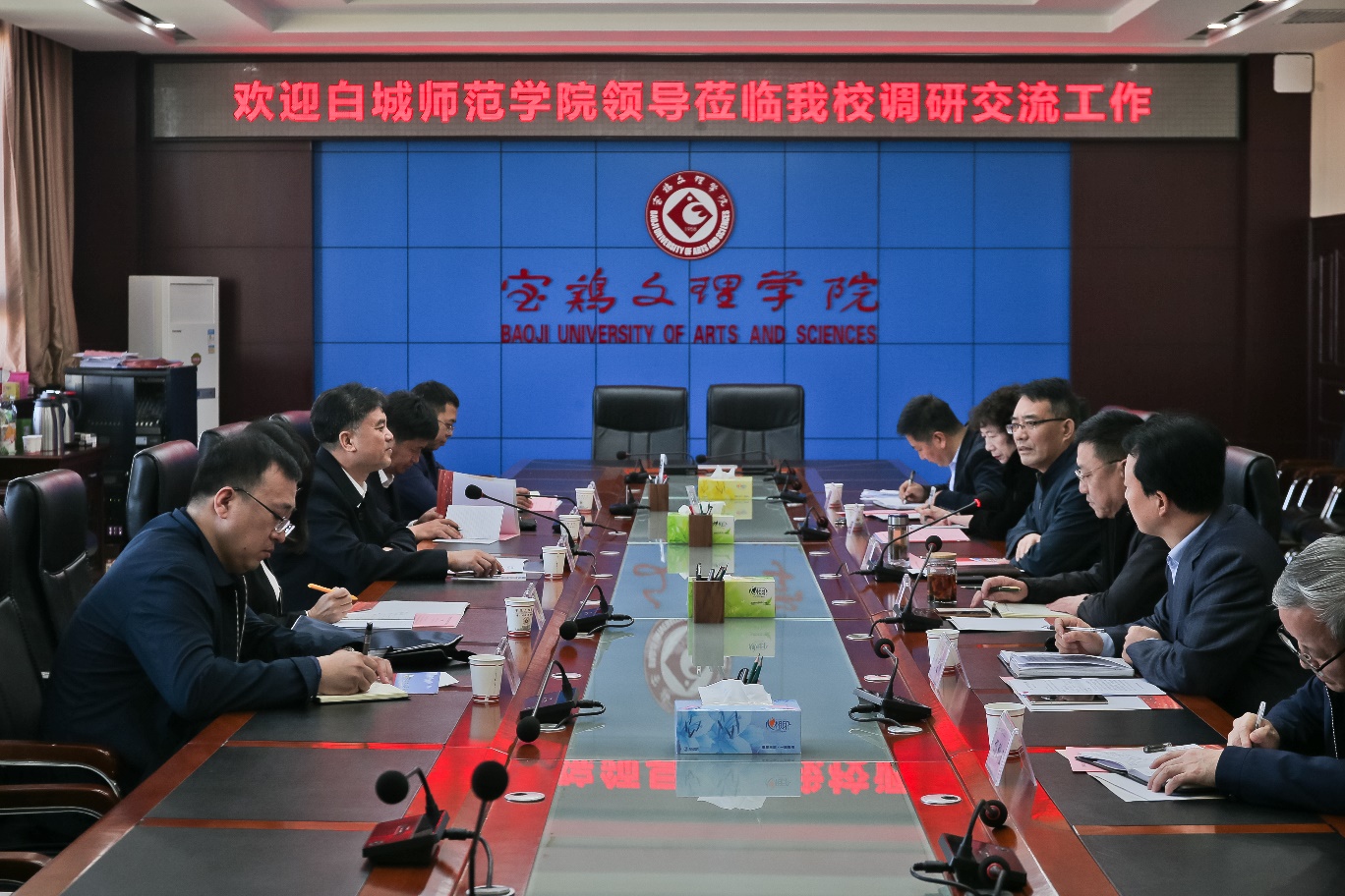 10月22日,白城师范学院党委书记王喜库率该校党委(院长)办公室、纪委、组织部、宣传部等部门负责人一行5人来bat365调研交流工作,校党委书记赵健会见了王喜库一行,双方在高新校区图书馆801会议室进行了座谈交流。
