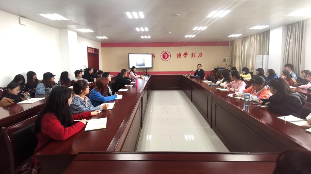 10月19日下午,副校长杨子元在博文楼1401会议室,以《胸怀祖国 树立远大理想 无愧于伟大的时代》为题,为文学与新闻传播学院师生讲授了一堂思政课,全体辅导员、入党积极分子和学生干部代表聆听了思政课。