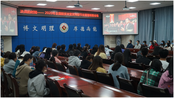 10月17日晚8时,学校组织全校师生收看了国务院扶贫办和中央电视台联合录制的“决战的时刻—2020年全国脱贫攻坚奖特别节目”。