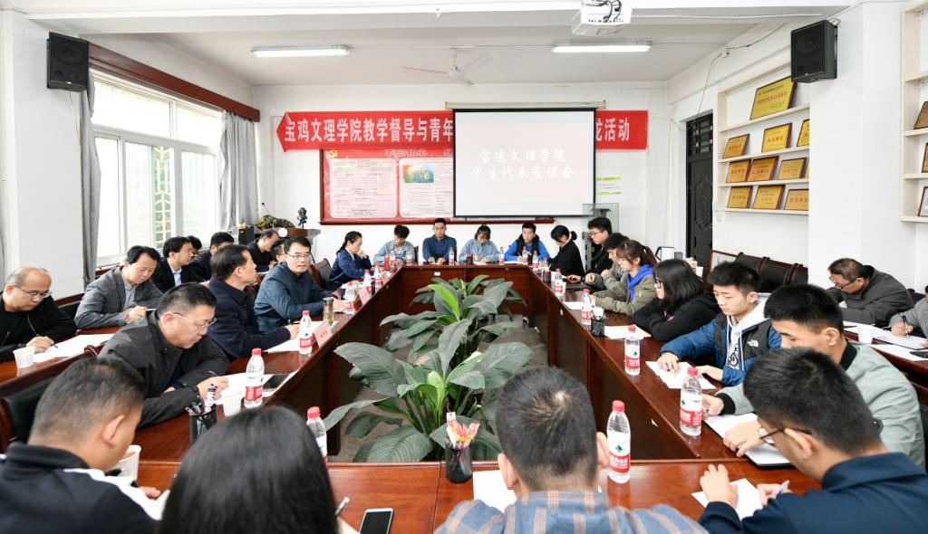 10月9日上午,校党委书记赵健在石鼓校区教学主楼207会议室主持召开了学生代表座谈会,听取学生对学校工作的意见建议,勉励学生志存高远、勤奋学习、全面发展,为宝文理事业增光添彩。校党委副书记栾宏,副校长杨子元、李景宜一同座谈。