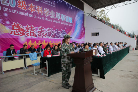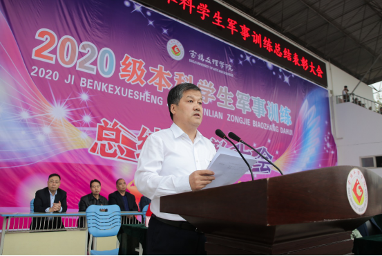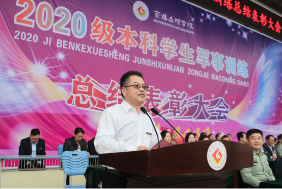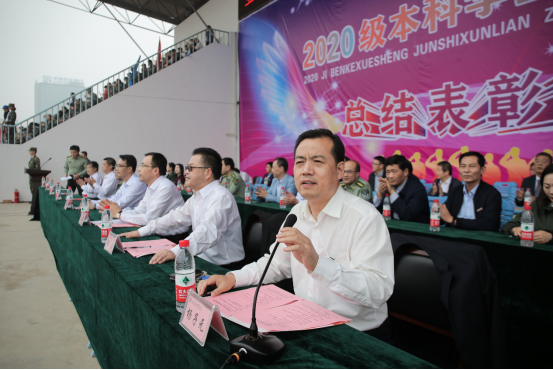 校党委副书记栾宏在总结讲话中指出,本次军训职能部门安排周详,准备较充分,参训学生态度端正、训练认真,军训团严训细抓,收效较明显,达到了预期目标。他希望同学们志存高远,牢固树立家国情怀,树担当精神以立报国之志,学好专业技能以增强国之才,练就过硬本领以践爱国之行;希望同学们自强不息,保持豪情壮志,始终保持积极乐观的态度,正确面对挑战和挫折;希望同学们懂得感恩,常怀感恩之心,常念感激之情,常表感谢之意,让身边的世界更加丰富多彩;希望同学们修身立德,以军人为楷模,保持军训中的优良作风,注重内心修炼,培养健康人格,展示青春奋斗的姿态,成就自己的无悔人生。