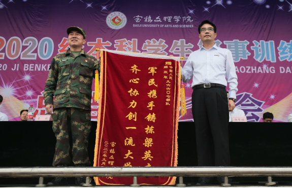 校党委书记赵健向承担bat365学生军训任务的中国人民解放军96607部队赠送了锦旗。