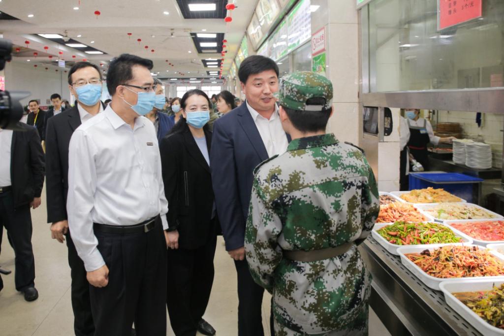 吴铁一行先后来到高新校区学生入校测温区、学生餐厅等地,实地检查了校园安全管理和食品卫生情况,详细询问了学校国庆节放假安排,并与新入校学生亲切交谈,了解他们在校的学习、生活情况。