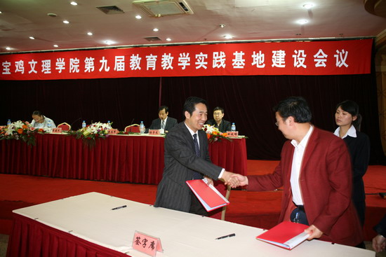 我院学工部部长、学生处处长、就业中心主任李建民在会议上通报了我院近几年毕业生就业概况、2009届毕业生就业工作状况以及我院就业的主要工作和措施,希望教育教学实践基地的领导能够为我院毕业生创造更多的就业机会和岗位。教务处副处长田延峰宣读了我院新增的兼职教授、副教授、副研究员名单,教务处副处长孙新宣读了我院新建的教育教学实践基地名单和新增的示范实习基地名单。傅志军与新建教育教学实践基地领导签订了协议书,向他们赠送了铜牌,并向新增的示范实习基地领导赠送了奖牌,向新增的兼职教授、副教授、副研究员颁发了聘书。会后,与会代表还参观了宝鸡市青铜器博物馆。
