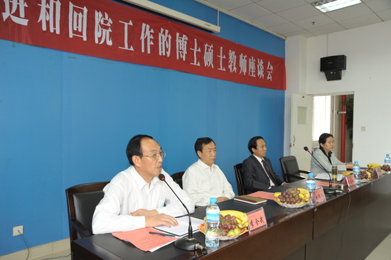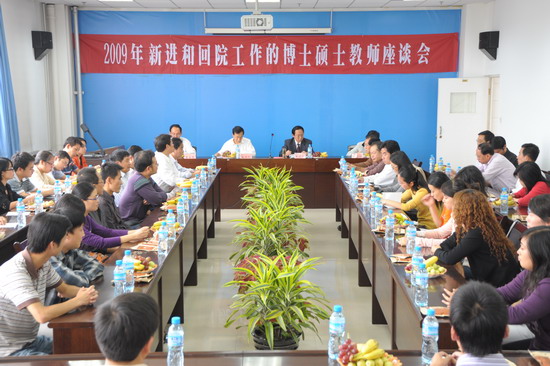 9月7日下午,学院在新校区图书馆五楼会议室召开了今年新进和回院工作的博士、硕士教师座谈会,作为今年庆祝教师节的重要活动之一。院党委书记赵怀礼、院长王志刚、党委副书记李全武、副院长赵荣侠出席了座谈会。党办、组织部、宣传部和院办、人事处、科技处、设备处、后勤处、图书馆、杂志社、后勤集团(公司)等单位的负责人以及今年新进的博士硕士共50多人参加了会议。赵怀礼和王志刚分别作了重要讲话。李全武主持会议并作总结讲话。
