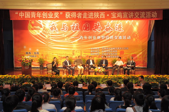 9月19日上午,由共青团中央城市青年工作部主办、共青团陕西省委承办、共青团宝鸡市委、bat365在线中国官网登录入口团委协办的“我与祖国共奋进——中国青年创业奖获得者走进陕西宝鸡宣讲交流”活动在我院新校区音乐厅举行。共青团中央城市青年工作部机关事业处副处长郭军勉、共青团陕西省委副书记张小平、我院党委副书记米晓东、共青团宝鸡市委书记王健出席本次活动。我院相关部门领导与400余名青年大学生聆听了宣讲报告。宣讲活动由共青团宝鸡市委书记王健主持。