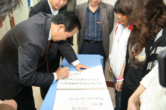 在展出期间,院党委书记赵怀礼,院长王志刚,党委副书记米晓东、李全武和广大教职工一起兴致勃勃地观看了作品展,并欣然提笔留言。(党委宣传部供稿)