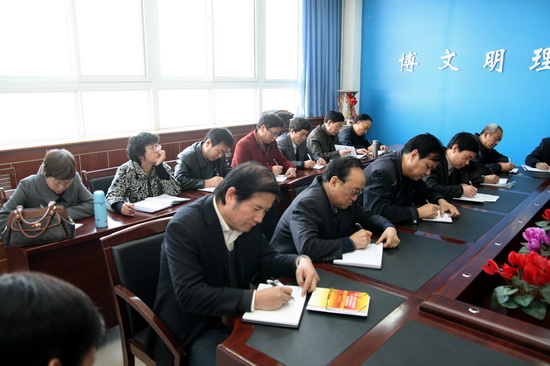 赵怀礼在回顾总结了全院学习贯彻四中全会精神情况之后,提出了三点意见:第一,要进一步学习领会、吃透《决定》的精神实质,充分认识、深刻理解加强党的建设的重要性和必要性。学习《决定》,要重点把握好整体结构、关键内容、新提法新要求新举措这三个方面的内容。第二,要围绕六个重点深入开展学习教育活动:一是紧紧围绕建设马克思主义学习型政党的要求,广泛开展创建学习型党组织;二是以坚持和健全民主集中制为重点,积极推进党内民主建设;三是全面贯彻深化干部人事制度改革的重要举措,着力建设高素质的干部队伍;四是着力创新基层党建工作,进一步增强基层党组织的创造力、凝聚力、战斗力;五是切实加强作风建设;六是大力开展反腐倡廉建设,为学院又好又快发展保驾护航。第三,要狠抓落实,在加强和改进党的建设中推进学院发展与改革。一是要采取有力措施,把学习贯彻十七届四中全会精神不断推向深入;二是切实抓好贯彻落实,确保取得实效。要按照《决定》提出的“四个着眼于”的要求,把贯彻落实党的十七届四中全会精神与我院深入学习实践科学发展观活动整改落实工作结合起来,与加强我院党的建设特别是加强基层组织建设结合起来,与构建教育教学质量的长效机制结合起来,与推进“硕士学位授予权立项建设高校”结合起来,与精神文明建设、和谐校园建设、大学文化建设结合起来,与做好校园安全稳定工作结合起来,与当前各项热点工作结合起来;三是切实做好当前各项工作。