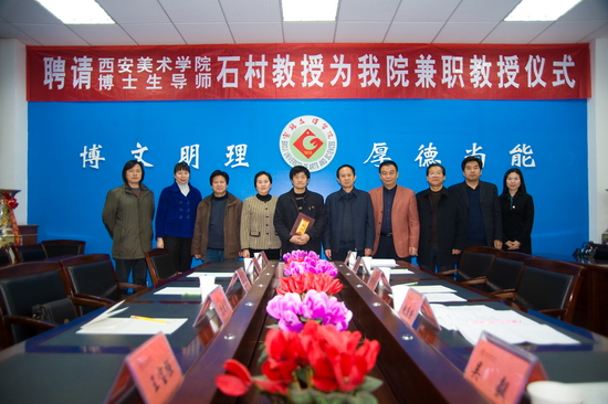 11月30日下午,我院在新校区第一会议室举行西安美术学院博士生导师石村教授受聘为我院兼职教授聘任仪式。院长王志刚出席会议并讲话,副院长赵荣侠主持聘任仪式。