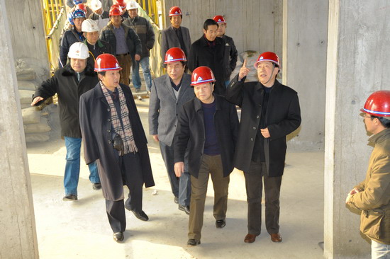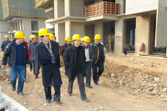 元月16日下午,院党委书记赵怀礼、院长王志刚、副院长傅志军、王普藩等领导来到正在施工建设的新校区高层住宅楼工地,检查工程进度与质量。