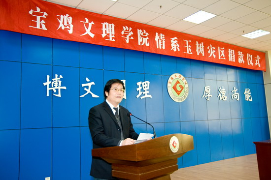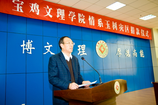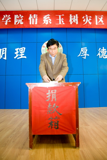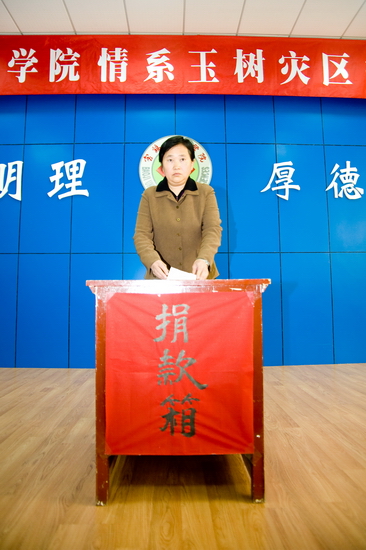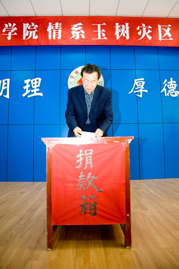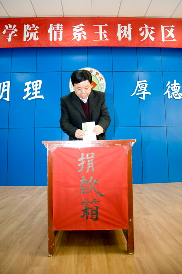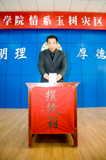 4月21日下午,“bat365在线中国官网登录入口情系玉树灾区捐款仪式”在新校区甘棠厅举行。院党委书记赵怀礼,院长王志刚,院党委副书记米晓东、李全武,副院长傅志军、王普藩、赵荣侠以及全体机关工作人员参加了捐款仪式。捐款仪式由机关党委书记李建民主持。
