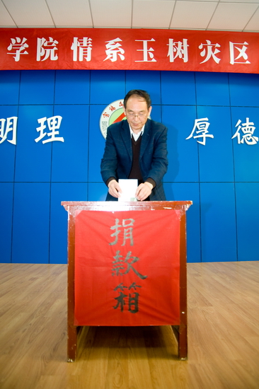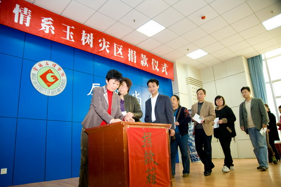 与会领导率先向玉树受灾同胞捐款,随后各机关工作人员纷纷捐款,向灾区人民奉献自己的一份爱心。(党委宣传部供稿)