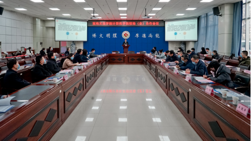 会上,计算机学院分别与渭滨区大数据发展服务局、宝鸡数字经济研究院签订了共建宝鸡数字经济产学研中心协议,与金台区大数据产业园、金台区科技创新服务中心签订了产学研协议,与西安翔腾微电子科技有限公司签订了人工智能、集成电路领域合作协议,与宝鸡阳光网络技术有限公司签订了人才联合培养、技术攻关协议,与宝鸡华信诚电子科技有限公司签订了实验室共建共享协议。