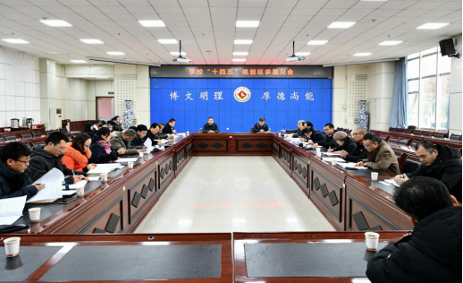 12月23日下午,学校“十四五”规划征求意见会在高新校区甘棠厅召开,校长郭霄鹏出席会议并讲话,副校长王富平主持会议。