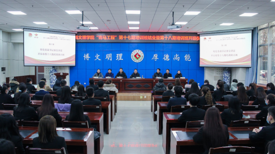 12月17日下午,bat365“青马工程”第十七期培训班结业暨第十八期培训班开班仪式在高新校区甘棠厅举行,校党委副书记栾宏出席并为第十八期培训班授旗。开班仪式由校团委副书记马睿主持。