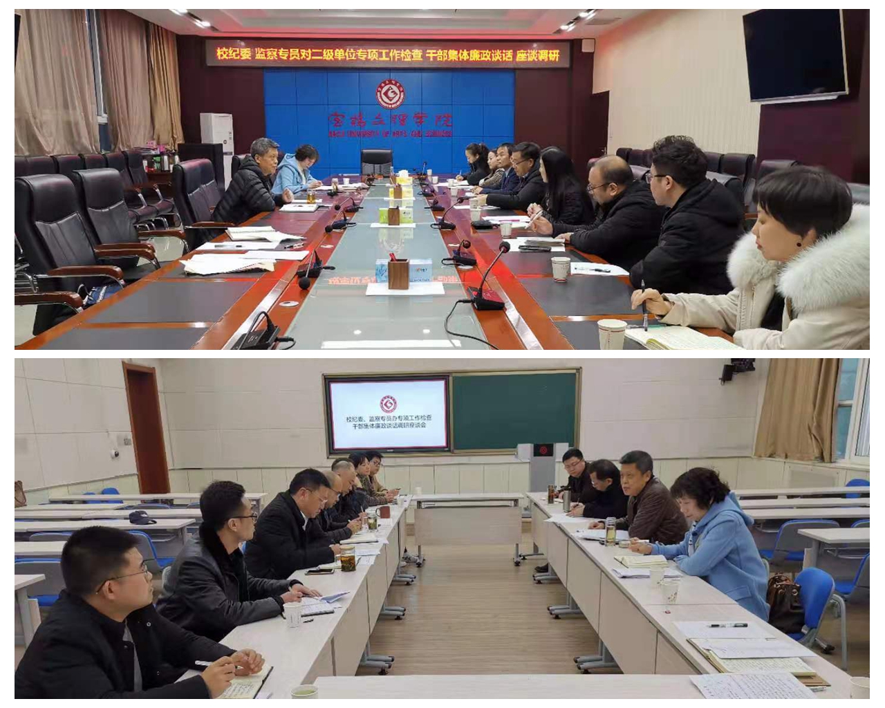 12月2日、3日,校党委副书记、纪委书记、监察专员段恒春带队分别到实验室建设与管理处、网络与信息管理处、招生就业处、国际合作与交流处等4个部门开展专项工作检查、干部廉政谈话和座谈调研。