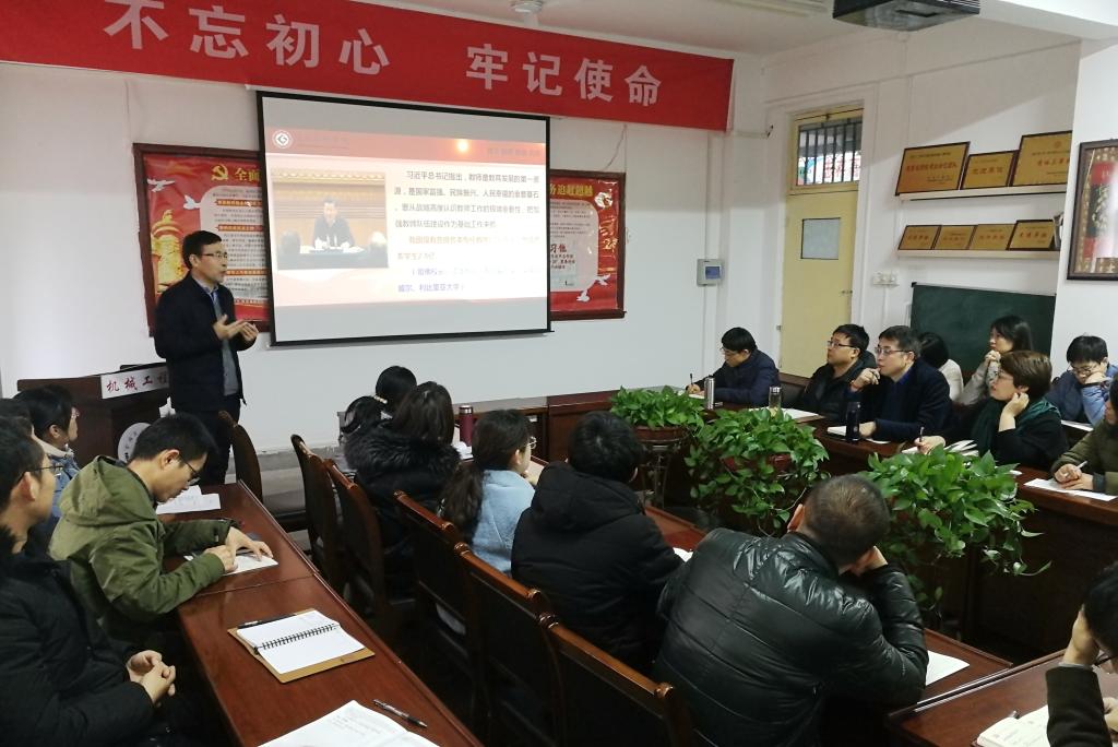 12月2日下午,校长郭霄鹏在石鼓校区主楼413会议室以《不忘立德树人初心,牢记育人育才使命》为题,为机械工程学院教职工讲了一场专题思政课。
