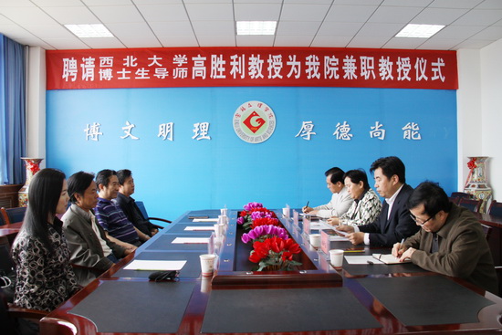 5月21日上午,我院在新校区第一会议室举行聘请西北大学高胜利教授为我院兼职教授仪式。副院长赵荣侠出席会议并讲话,科技处处长吴毅主持聘任仪式。