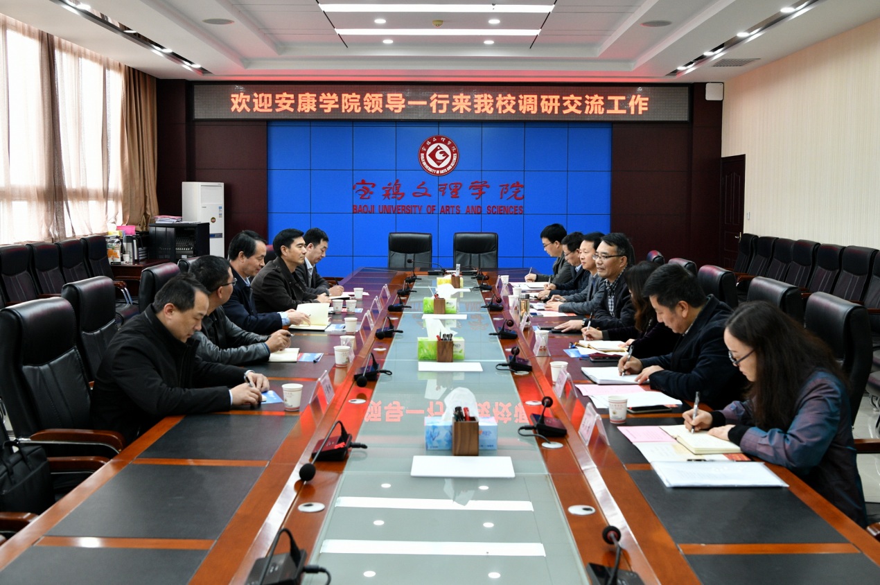 11月5日下午,安康学院党委书记王国良一行5人来bat365调研交流工作。调研座谈会在bat365高新校区图书馆801会议室召开,校党委书记赵健出席会议。