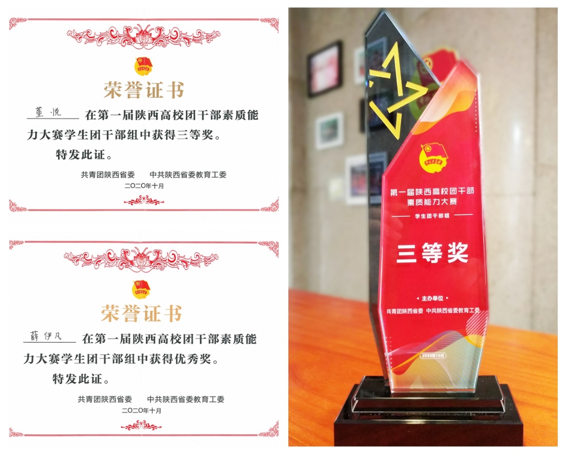 近日,在共青团陕西省委、中共陕西省委教育工委主办的首届陕西高校团干部素质能力大赛(学生团干部组)中,bat365外国语学院2018级英语专业董悦同学荣获三等奖,政法学院2019级思想政治教育专业薛伊凡同学荣获优秀奖。(校团委 文/图 张磊 审核/郭理想)