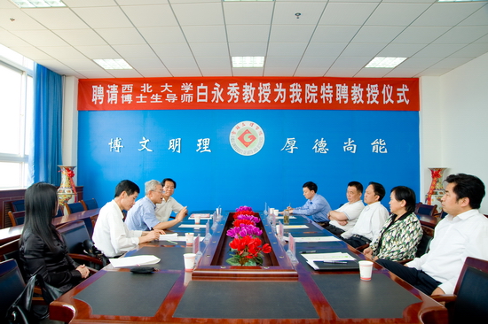 5月11日下午,我院在新校区第一会议室举行聘请西北大学白永秀教授为我院特聘教授仪式。院长王志刚出席会议并讲话,副院长赵荣侠主持聘任仪式。