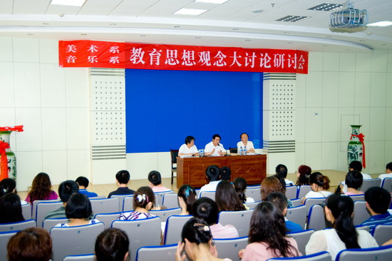 6月23日下午,美术系、音乐系在新校区木铎厅召开教育思想观念大讨论研讨会。副院长王普藩出席会议并讲话。高教研究室主任、教务处副处长田延峰和美术系、音乐系党政领导、全体教职工参加了研讨会。美术系主任党天才主持研讨会。音乐系主任刘进锁作大会总结。