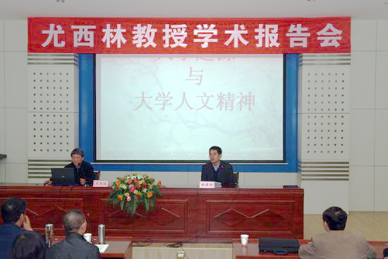 10月21日下午,教育部“美学原理”首席专家、陕西师范大学文学院博士生导师尤西林教授在我院新校区木铎厅作了题为《大学起源与大学人文精神》的学术报告。报告会由中文系主任赵德利教授主持,近300名师生聆听了报告。